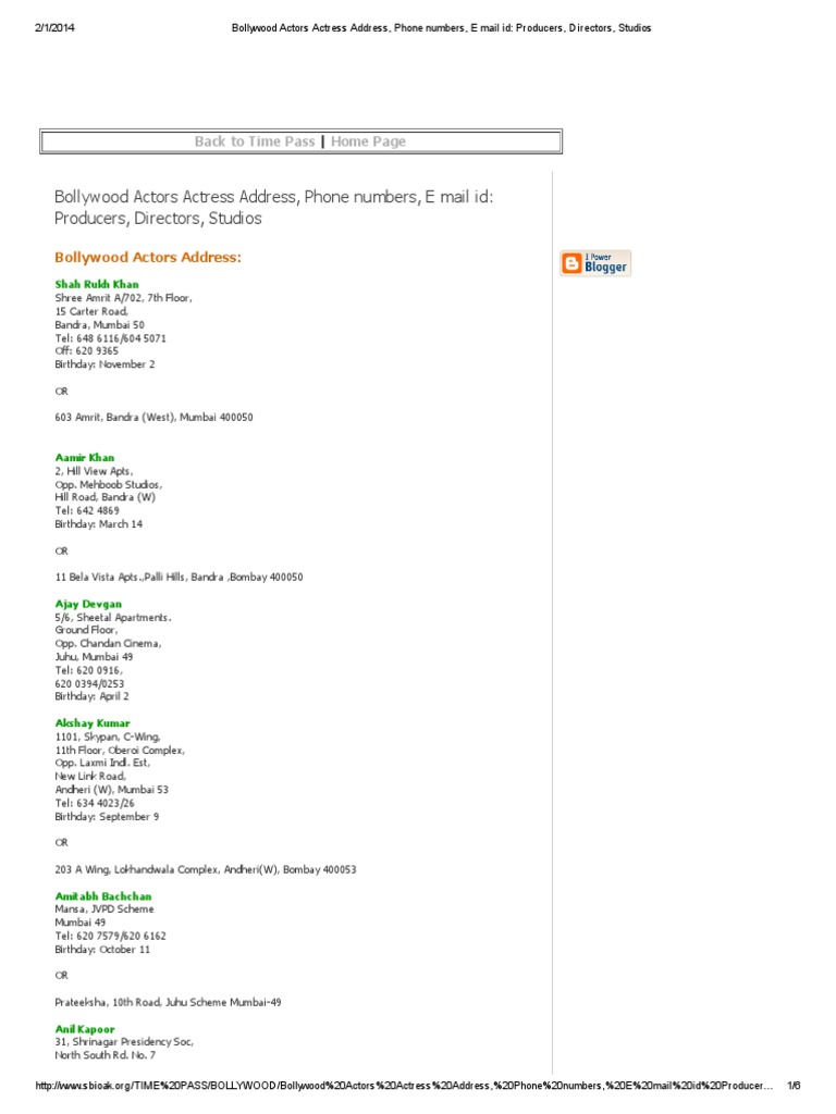 Email Id Of Bollywood Actors Email Id Of Bollywood Actors - This is a list of different actors of bollywood who worked in bollywood movies and are well known in india.