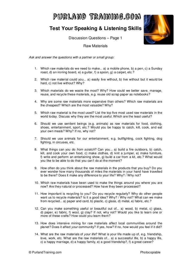 Discussion Questions Raw Materials Page 1 - So take these questions and discuss!